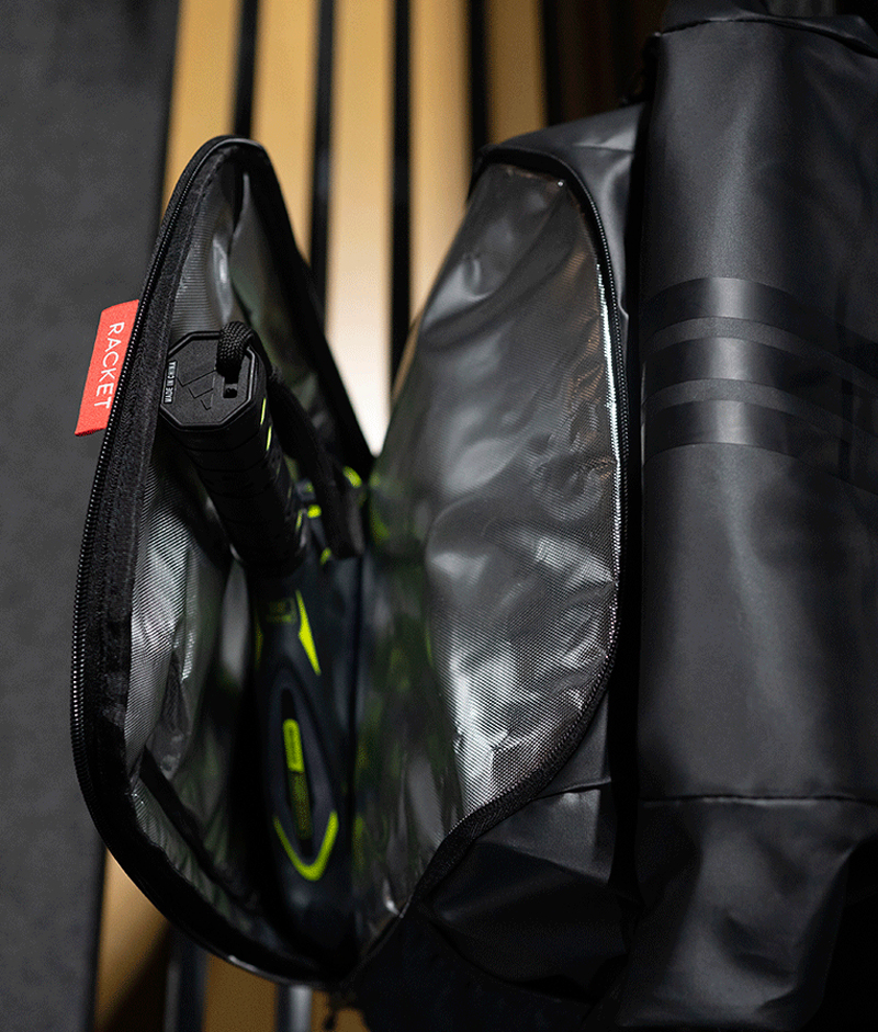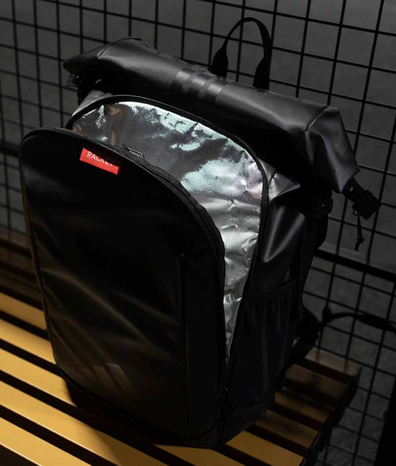 Prednji termo izolovani džep sa dodatnim ojačanjem omogućava da reket bude zaštićen od temperature i udaraca tokom svakodnevnog nošenja, dok unutrašnji pregradni sistem uključuje odvojeni deo za laptop ili reket i džep za sitnice.